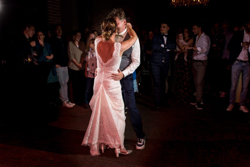 De ceremonie was erg persoonlijk, doordat iedereen die aan het woord was, een vriend of familielid van het bruidspaar was. Voor mij als trouwfotograaf is dit een van de mooiste onderdelen van een bruiloft: luisteren naar de persoonlijke verhalen en tegelijkertijd de emoties vastleggen. Het was genieten om te zien hoe dichtbij iedereen stond bij het bruidspaar.